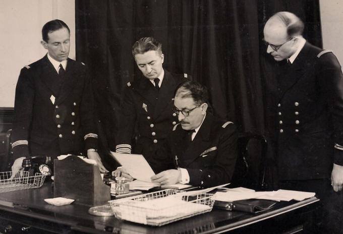 Le CF Moullec est le deuxième en partant de la gauche (EM de l’Amiral Muselier)